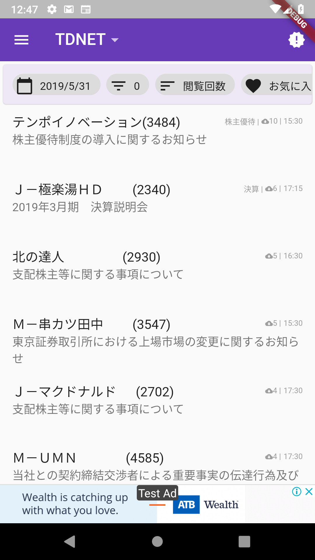 閲覧回数が多い順 に、適時開示情報を表示可能です。人気の適時開示情報を素早く知ることができます。
