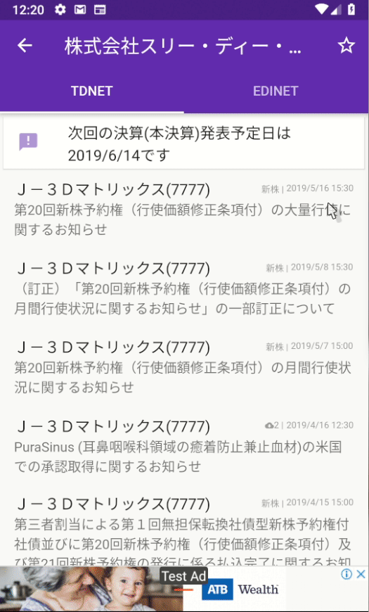適時開示情報(TDNet/Edinet)の並び替えができるようになりました